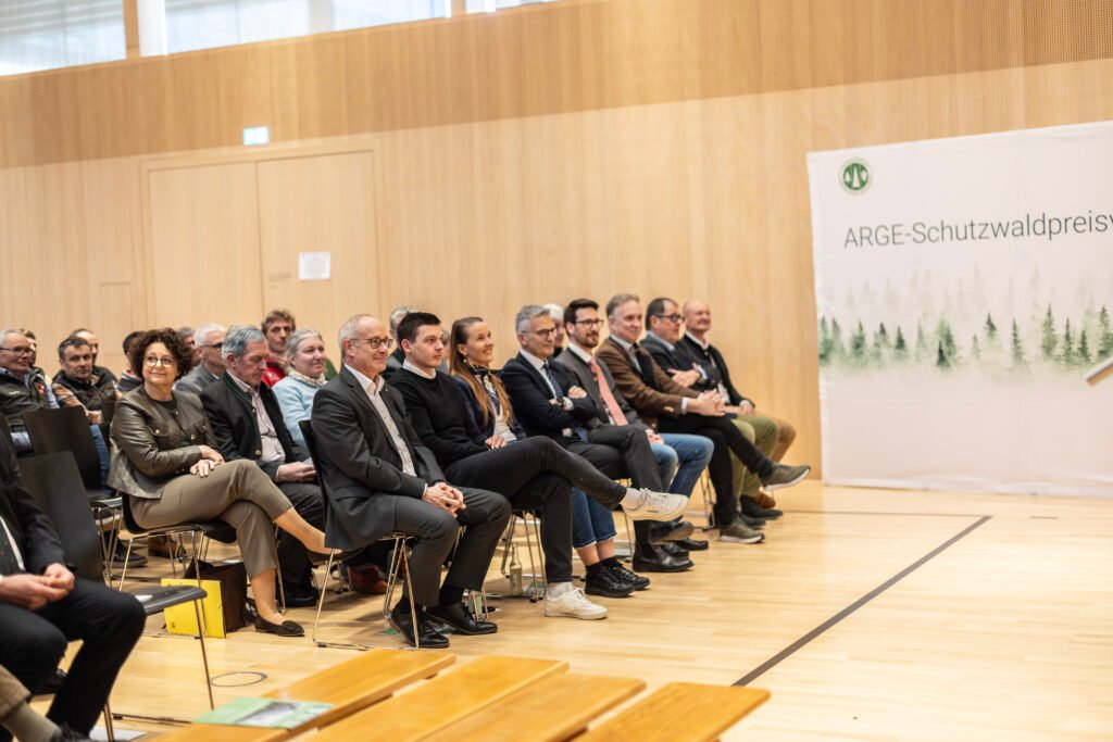 Viele waren da: Forstleute, Waldbesitzer:innen, Waldaufseher, Forstvereinsmitglieder und -funktionäre aller ARGE Mitgliedsländer, deren Politik- und Behördenvertreter:innen sowie Vertreter:innen der jeweiligen Wildbach- und Lawinenverbauung. Und vor allem natürlich die Personen aller Altersklassen, die hinter den ausgezeichneten Projekten stehen. Von Kindern im Primarschulalter bis zum „alten“ Schutzgeist, den Schutzwaldpaten des Waldes.