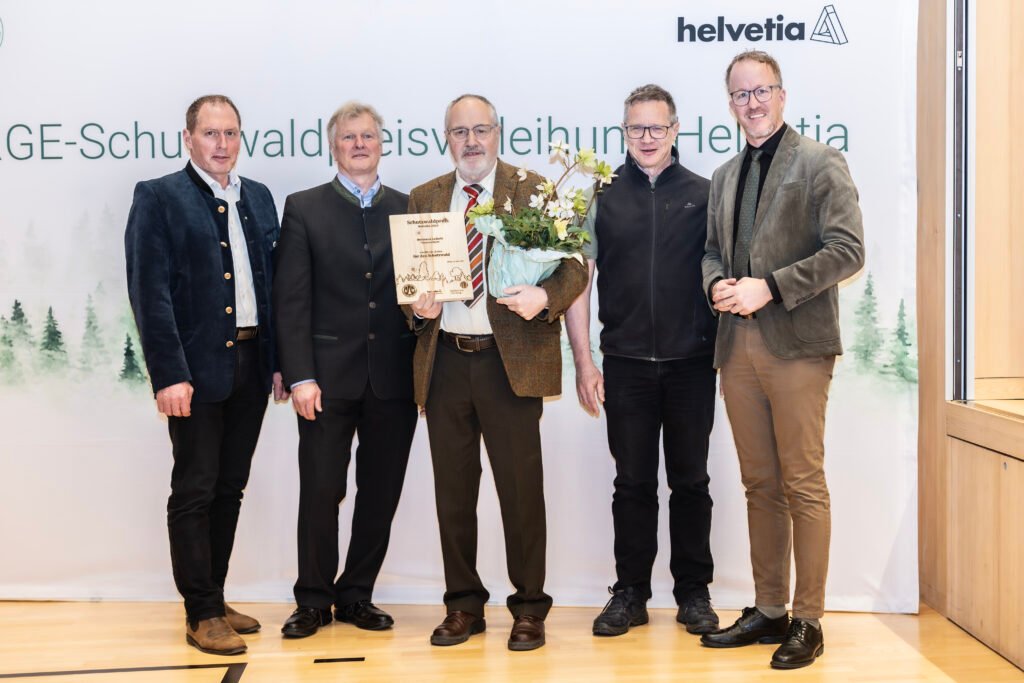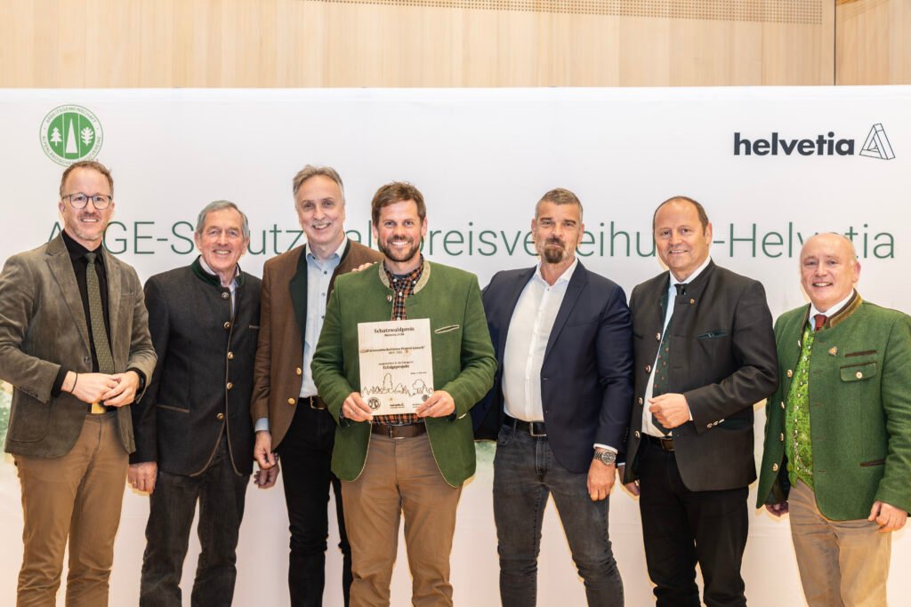 Schutzwälder sind für den gesamten Alpenbogen und die daran teilhabenden Staaten von essenzieller Bedeutung. Mit dem „Schutzwaldpreis“ würdigt die ARGE Alpenländischer Forstvereine vorbildliche Projekte im Einsatz für den Schutzwald in verschiedenen Kategorien. Seit 2014 ist die Versicherungsgruppe Helvetia Hauptsponsor des Schutzwaldpreises. Das Unternehmen engagiert sich seit Jahren für die Pflege und den Erhalt alpiner Schutzwälder. Heuer richtete der Vorarlberger Waldverein als Mitglied der Arge Alpenländischen Forstvereinen das Fest in Mellau im Bregenzerwald aus.