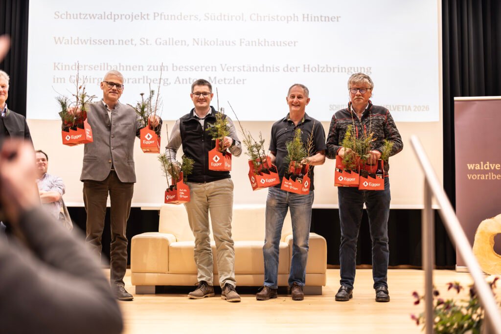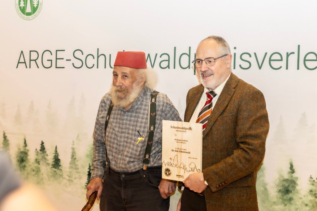 Die Lösung des zentralen Problems von überhöhten Wildbeständen in der Schutzwaldbewirtschaftung spiegelte sich in einigen der ausgezeichneten Projekten wieder. So auch beim als Schutzwaldpaten gewürdigten Hermann Lederle. Erfolgreiche Aufforstungen, die Sicherstellung einer flächigen Naturverjüngung der Objektschutzwälder (indem er als unabhängiges Abschussorgan der Wildbach- und Lawinenverbauung von 1991 bis 2016 für die behördlich angeordnete Freihaltebejagung in einem 100 ha umfassenden Gebiet im Großen Walsertal gesorgt hat) und eine daraus resultierende enorme Beispielwirkung waren seine ganz besonderen Verdienste.